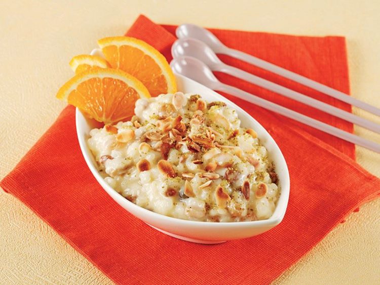 - Servis tabağına alıp kavrulmuş badem ve portakal dilimleriyle süsleyin..