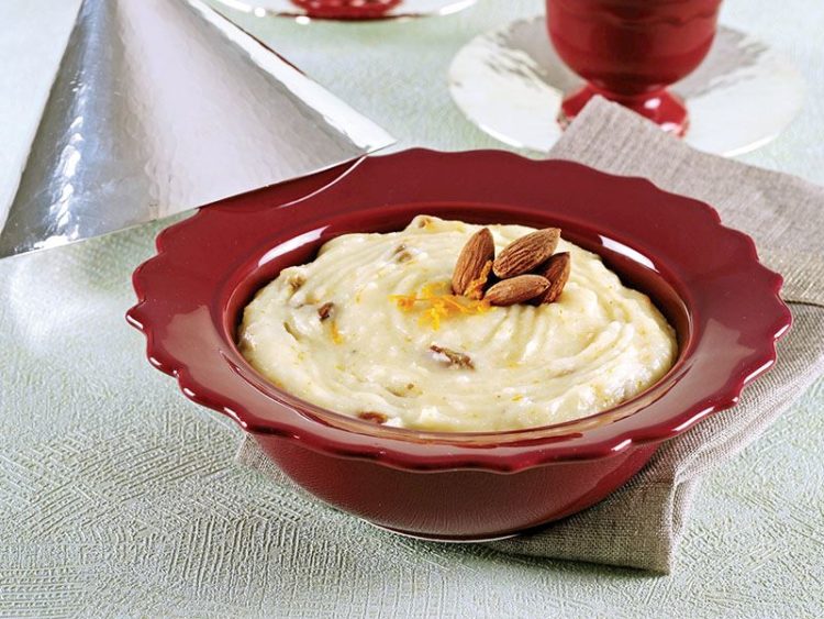 - Kaselere paylaştırıp badem ve rendelenmiş portakal kabuğuyla süsleyip servis yapın..