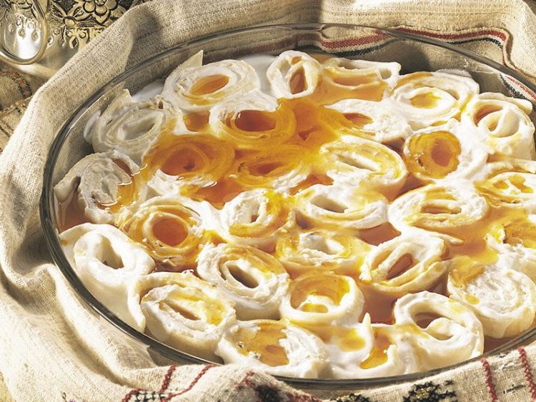 - Yufka rulolarının üzerine dökün..