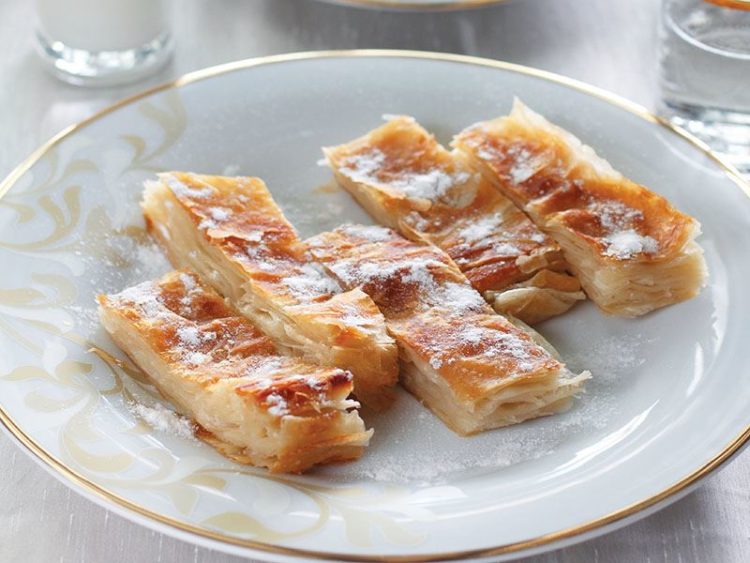 - Üstteki yufkanın üzerine sade yağ sürüp önceden ısıtılmış 180 derece fırında kızarana kadar pişirin..