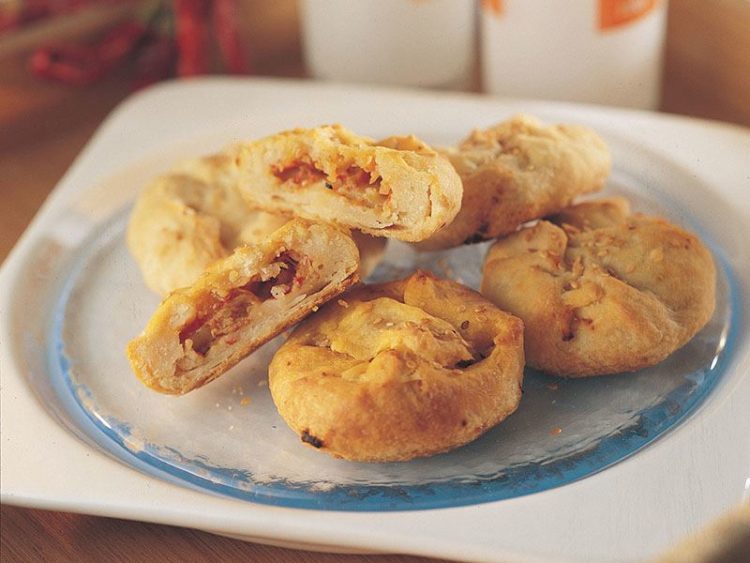 - Hamurların yarısını kabaklı, yarısını da patatesli iç malzemeyle hazırlayıp hafif yağlanmış tepsiye dizin..