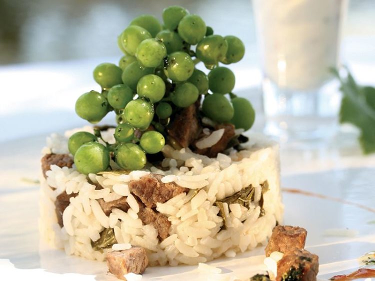 - Koruk suyu (yeşil üzüm suyu), ince doğranmış asma yaprağı ve etsuyunu ilave ederek kaynatın..
