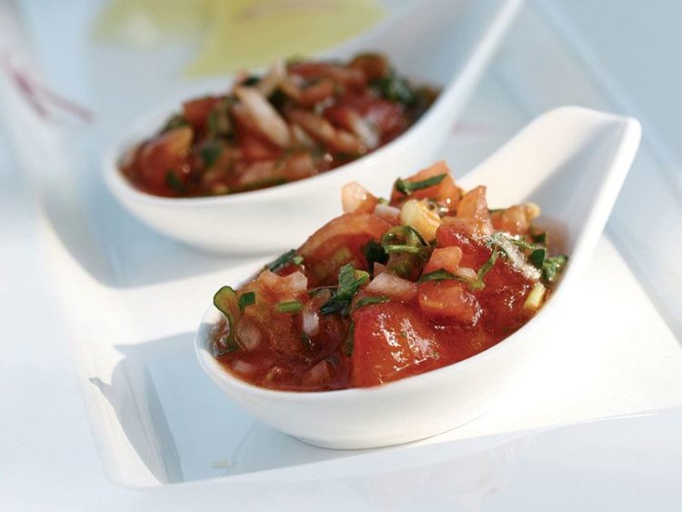 - Domatesleri yıkayıp kabuklarını soyun ve çok ince küp şeklinde doğrayın..