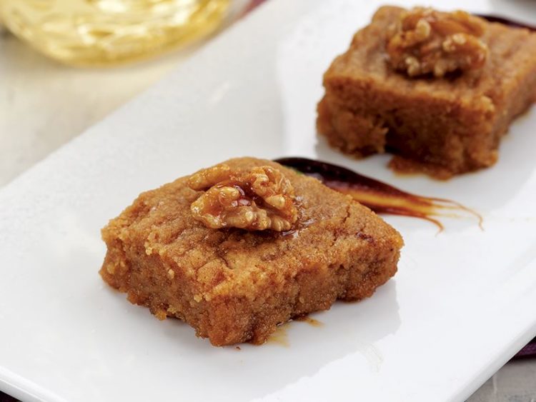 - .5 su bardağı ince çekilmiş ceviz içi3 çorba kaşığı tahin3 çorba kaşığı yoğurt5 su bardağı (625 gr) un1 paket kabartma tozu2 su bardağı tozşeker3 su bardağı suYarım limonun suyu