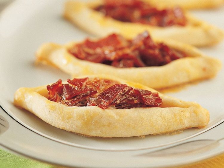 - Üzerine pastırmalı malzemeden yayıp iki kenarını katlayarak pide şeklinde kapatın..