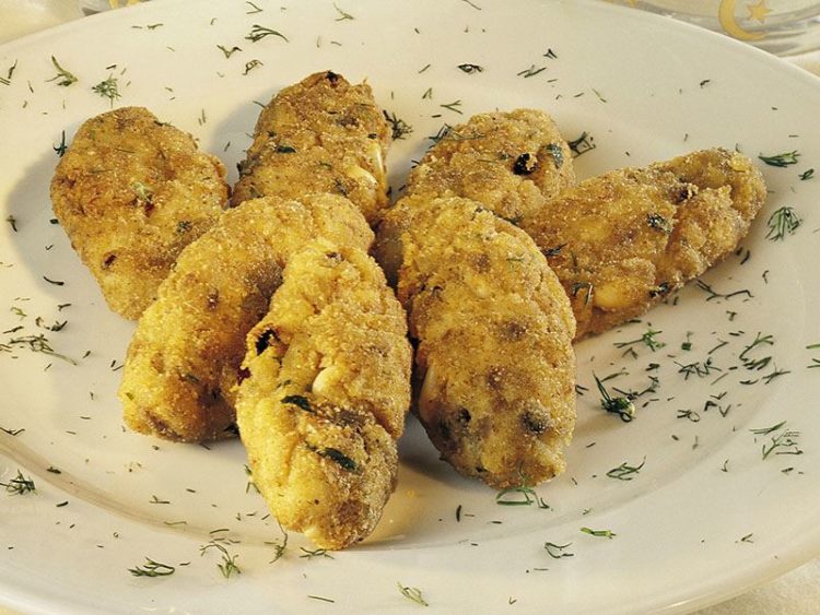 - 1 palamut3 soğan2 orta boy patatesYarım demet maydanoz1 kahve fincanı dolmalık fıstık1 kahve fincanı kuşüzümü2 yumurta1 çorba kaşığı yenibahar1 çorba kaşığı unKızartma için sıvıyağGaleta unuTuz